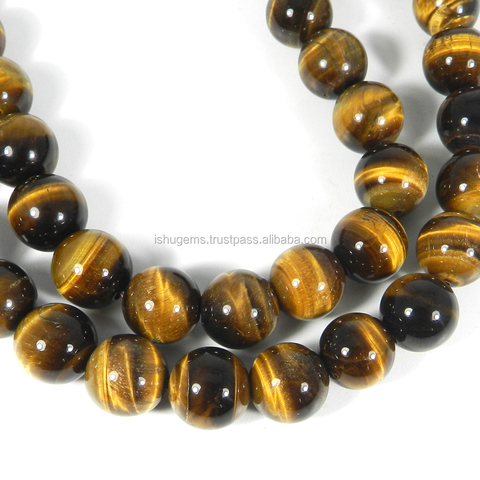 Exclusivas cuentas de ojo de tigre de 15 pulgadas 12mm liso redondo 386,45 Cts color amarillo